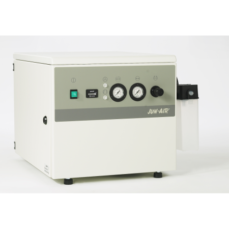 This product has been discontinued by the manufacturer. Please contact us for the closest replacement - Air compressor Jun-air OF302-4MQ2 oil free, 4l receiver volume, noise level of 47dB, airflow of 40l/min @ 5 bar, 34l/min @ 7 bar and 30l/min @ 8 bar, for general laboratory applications, gas generation, anti-vibration tables, mass spectrometry, rheometers, gas and ION chromotography