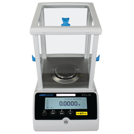 Balance analytical Adam Equipment Solis SAB 124e capacity 120g, readability 0.0001g, pan diameter 80mm, external calibration, no touch screen, with guided levelling, stabalization time 4 seconds