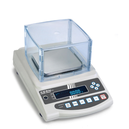 Balance top pan Kern PES 620-3M 620g capacity, 0.001g readability, external calibration, pan dimensions 140w x 120d mm, draft shield included