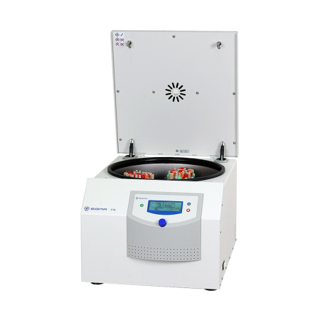Centrifuge benchtop Sigma 4-5L for general purpose applications, minimum tube size 4.7ml, maximum tube size 750ml, maximum g force 4643, run counter, no rotor included