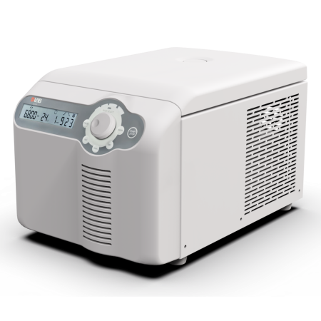 A laboratory microfuge, also known as a microcentrifuge, is a compact, high-speed centrifuge designed for spinning small samples at very high speeds. Typically used in molecular biology and biochemistry labs, it separates substances in a sample based on density, making it essential for tasks such as DNA/RNA extraction, protein purification, and sample concentration. With its small size, it accommodates microcentrifuge tubes or PCR tubes, offering precision and efficiency for high-throughput applications. The microfuge's rapid spinning creates a strong centrifugal force, causing denser components to move to the bottom of the tube, while lighter components remain at the top. This separation process allows researchers to analyse and manipulate microscopic quantities of biological materials effectively.