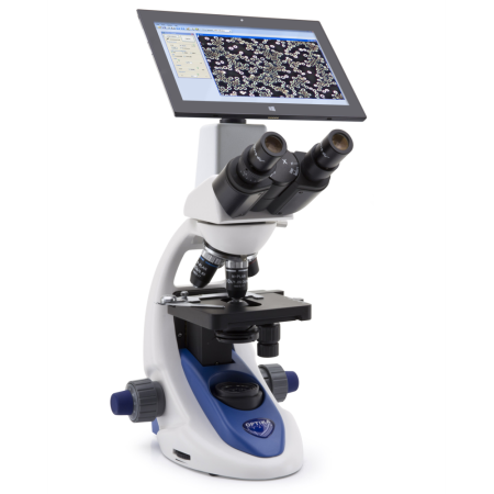 Microscope Optika B-190TBPL standard, binocular head type, maximum magnification 1000X, not capable of fluorescence, X-LED light source, camera included, mechanical stage included, supplied with 4x, 10x, 40x and 60x magnification N-PLAN objectives for bright field, suitable for education, UK plug M-957 required and not included. (replaces part number B-190TB)