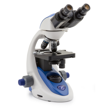 Microscope Optika B-192PL standard, binocular head type, maximum magnification 1000X, not capable of fluorescence, X-LED light source, camera not included, mechanical stage included, supplied with 4x, 10x, 40x and 60x magnification N-PLAN objectives for bright field, suitable for education (replaces part number B-192)