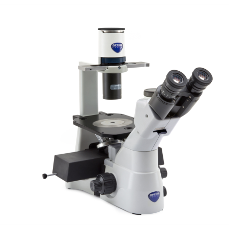 Microscope Optika IM-3LD2 inverted, trinocular head type, maximum magnification 10X, capable of fluorescence, X-LED light source, camera not included, no mechanical stage included, supplied with 10x, 20x and 400x magnification ISO LWD W-PLAN PH objectives for bright field and phase contast, suitable for cell culture, life science, environmental, quality control, industry, laboratories and water analysis (replaces part number IM-3LD-UK)
