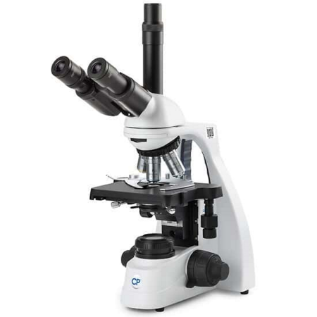 Microscope Cole-Parmer MSU-400 standard type, trinocular head type, maximum magnification 1000X, not capable of fluorescence, NeoLED light source, camera not included, mechanical stage, brightfield plan objective type, for x4 x10 x40 and x100 standard objective, suitable for education, laboratories and veterinary. Includes dust cover, white filter, 5 mL immersion oil, spare fuse, and power cord.