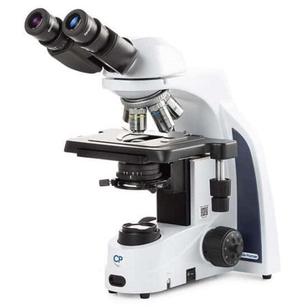 Microscope Cole-Parmer MSU-600 standard type, binocular head type, maximum magnification 1000X, not capable of fluorescence, NeoLED light source, camera not included, mechanical stage, brightfield semi-plan objective type, for x4 x10 x40 and x100 standard objective, suitable for education, life sciences and laboratories. Includes dust cover, a spare fuse, 5 mL immersion oil, and power cord.