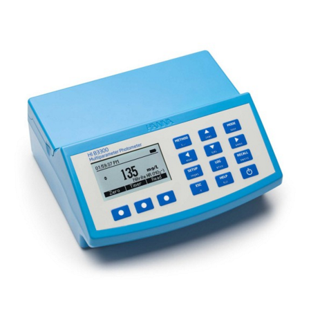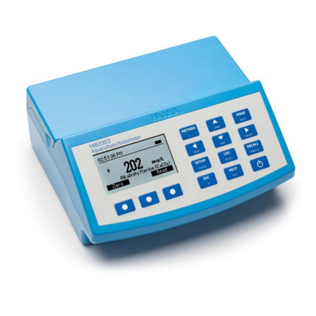 Multi-parameter meter Hanna Instruments HI-83325-02, benchtop, tests 8 parameters, USB download available, on screen help, not waterproof, measures temperature. Supplied with sample cuvettes and caps (4 ea.), activated carbon for 50 testst, 2 L demineralizer bottle, 100 mL graduated beaker with caps (10), 3 mL pipette, 60 mL syringe, 5 mL syringe, graduated cylinder, spoon, funnel, paper filters (100), cloth for wiping cuvettes, USB to micro USB cable connector, power adapter, instruction manual and carrying case. |