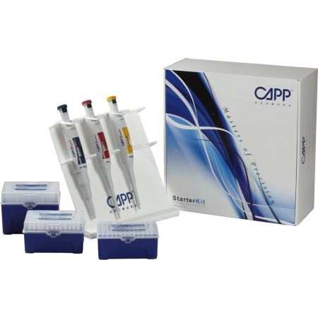 Pipette Capp Bravo Starter Pack includes 1 x Bravo 0.5-10ul, single channel pipette (B10-1), 1 x Bravo 10-100ul, single channel pipette (B100-1), 1 x Bravo 100-1000ul, single channel pipette (B1000-1), 1 x pipette stand (C-05), 3 x racks of tips and 1 x timer