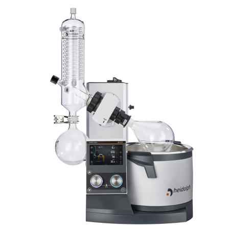 Rotary evaporator Heidolph Hei-VAP Expert Control ML/G3 with vertical coil condenser, for use under vacuum, electronic flask lift, no safety coating on glassware, no chiller or vacuum pump, includes bath, 5" touch screen and Micro SD and USB connectivity (replaces part number 564-01300-00)