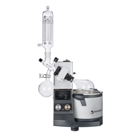 Rotary evaporator Heidolph Hei-VAP Expert HL/G6B with vertical coil with reflux option condenser, for use under vacuum, manual flask lift, with safety coating on glassware, no chiller or pump included, includes bath, 5" touch screen and Micro SD and USB connectivity (replaces part number 561-01610-00)