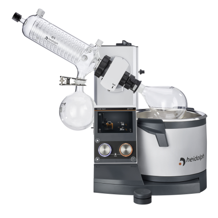 Rotary evaporator Heidolph Hei-VAP Expert ML/G1B with diagonal coil condenser, for use under vacuum, electronic flask lift, with safety coating on glassware, no chiller or pump included, includes bath, 5" touch screen and Micro SD and USB connectivity (replaces part number 562-01110-00)
