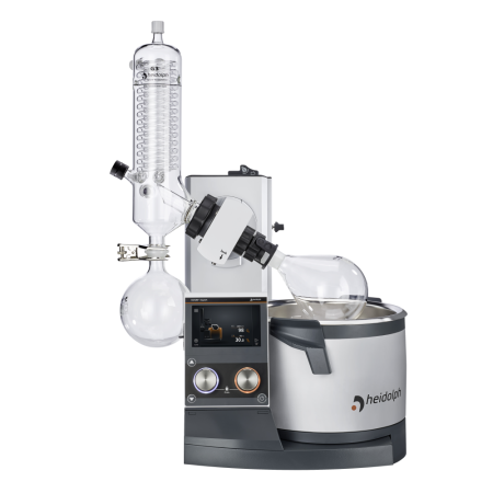Rotary evaporator Heidolph Hei-VAP Expert ML/G3B with vertical coil condenser, for use under vacuum, electronic flask lift, with safety coating on glassware, no chiller or pump included, includes bath, 5" touch screen and Micro SD and USB connectivity (replaces part number 562-01310-00)