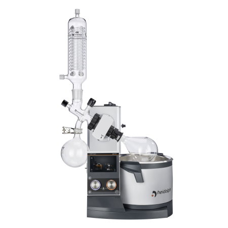 Rotary evaporator Heidolph Hei-VAP Expert ML/G6 with vertical coil with reflux option condenser, for use under vacuum, electronic flask lift, no safety coating on glassware, no chiller or pump included, includes bath, 5" touch screen and Micro SD and USB connectivity (replaces part number 562-01600-00)