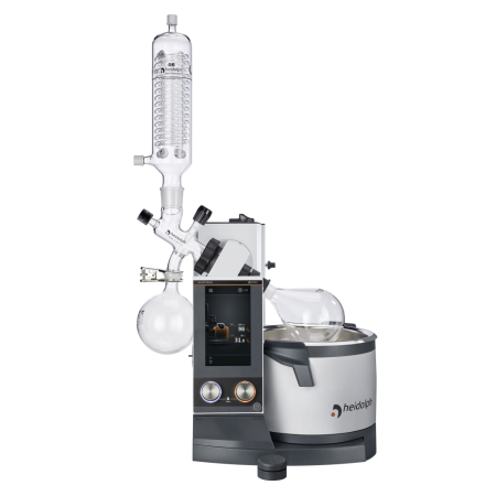 Rotary evaporator Heidolph Hei-VAP Ultimate HL/G6B with vertical coil with reflux option condenser, for use under vacuum, manual flask lift, with safety coating on glassware, no chiller or pump included, includes bath, 7" touch screen and LAN, RS232, Micro SD and USB connectivity (replaces part number 561-01610-00)