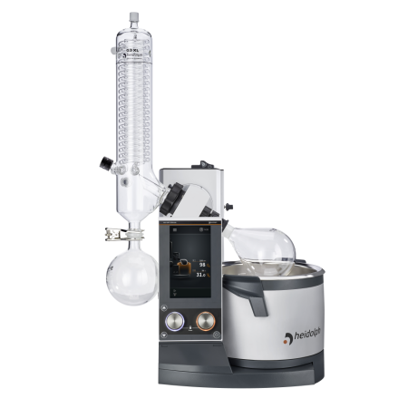 Rotary evaporator Heidolph Hei-VAP Ultimate ML/G3 XL with vertical coil condenser, for use under vacuum, electronic flask lift, no safety coating on glassware, no chiller or pump included, includes bath, 7" touch screen and LAN, RS232, Micro SD and USB connectivity (replaces part number 562-01305-00)