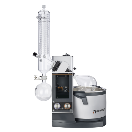 Rotary evaporator Heidolph Hei-VAP Ultimate ML/G3B XL with vertical coil condenser, for use under vacuum, electronic flask lift, with safety coating on glassware, no chiller or pump included, includes bath, 7" touch screen and LAN, RS232, Micro SD and USB connectivity (replaces part number 562-01315-00)