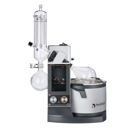 Rotary evaporator Heidolph Hei-VAP Ultimate ML/G3B with vertical coil condenser, for use under vacuum, electronic flask lift, with safety coating on glassware, no chiller or pump included, includes bath, 7" touch screen and LAN, RS232, Micro SD and USB connectivity (replaces part number 562-01310-00)