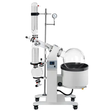 Rotary evaporator DLab RE5000-Pro, vertical coil condenser, electronic flask lift, 50L max evaporator flask volume, includes bath, with glassware