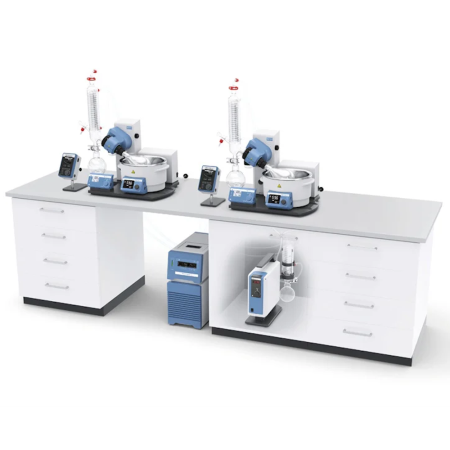 Rotary evaporator IKA England RV 10 digital pro V-C double complete, vertical coil condenser, for use under vacuum, 9 mbar ultimate vacuum, manual flask lift, no safety coating on glassware, package includes x2 RV 10 digital V-C, x2 VC 10 pro, vacuum pump VACSTAR digital, VSE 1, x2 VC 10.400 Stand, x2 VC 10.300 Check valve, RC 2 GREEN basic, x2 RV 10.5005 Set of hoses, x2 Y hose connector 8 mm. Product must be registered with IKA to extend the warranty to 5 years