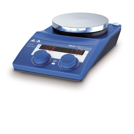 This product has been discontinued by the manufacturer. Please contact us for the closest replacement - Hotplate stirrer IKA RCT Basic 20l capacity, maximum plate temperature 310°C, aluminium plate, digital control, no RS232, supplied with temperature probe, 1 position, plate diameter 135mm