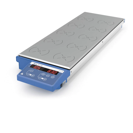Hotplate stirrer IKA RT 10 4l capacity, maximum plate temperature 120°C, aluminium plate, digital control, no RS232, no temperature probe, 10 positions, plate dimensions 180w x 495d mm