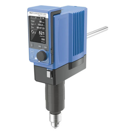 Stirrer overhead IKA England EUROSTAR 200 control P4 max capacity 100l, stirrer speed 4 to 530 rpm, digital control, with TFT speed display, includes H 67.60 temperature sensor and WH 11 WiCo holder.. Requires stirrer attachment