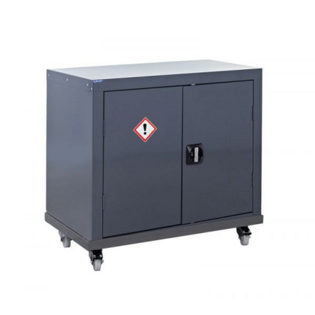 Storage cupboard QMP CZ109046MKXX Mobile CoSHH Cupboard - 1 shelf, suitable for flammables, toxins , not suitable for acids/alkalis, chemicals and compressed gases, dimensions 1400h x 900w x 460d mm, complies to COSHH regulations standards, colour is grey