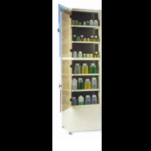 - Adjustable shelving for flexible storage - Multiple adjustable shelves accommodate bottles, containers and reagent sizes — ideal for chemical libraries in research, QA/QC and teaching labs.