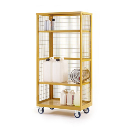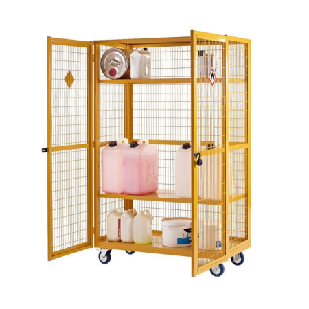 Trolley QMP Hazardous Boxwells, steel shelves with doors, steel, 500kg capacity, dimensions 900w x 600d x 1355h mm, yellow ![]() |