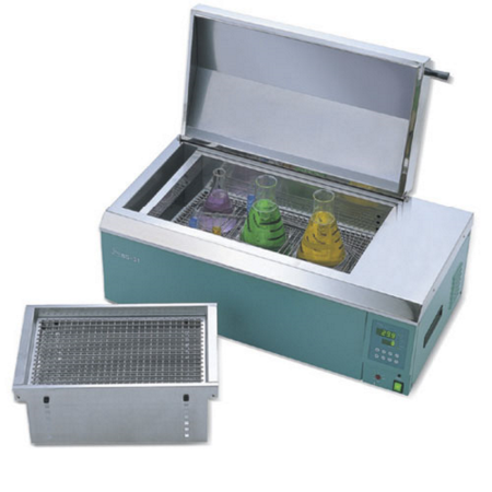 - Bath interior, cover, shaking basket and heating element are made of stainless steel