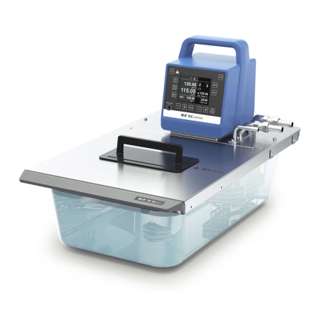 Water bath stirred IKA ICC control eco 18 c min temperature 21°C, max temperature 100°C, 0.01°C temperature stability, 18 litre plastic tank, with pump and PC connectivity, TFT display, lid included