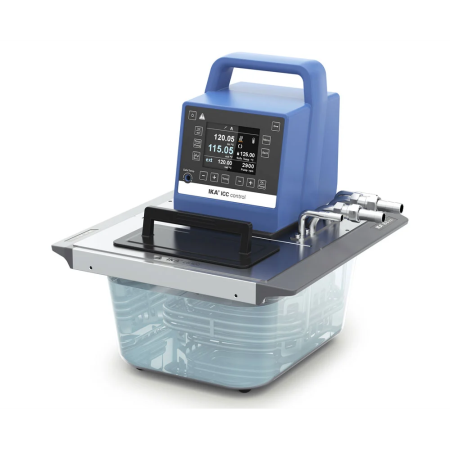 Water bath stirred IKA ICC control eco 8 c min temperature 21°C, max temperature 100°C, 0.01°C temperature stability, 8 litre plastic tank, with pump and PC connectivity, TFT display, lid included