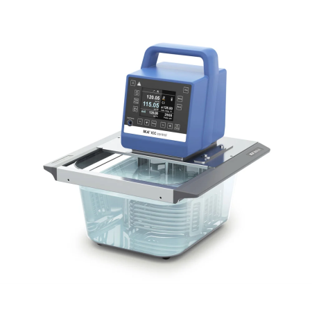 Water bath stirred IKA ICC control eco 8 min temperature 21°C, max temperature 100°C, 0.01°C temperature stability, 8 litre plastic tank, with pump and PC connectivity, TFT display, lid not included