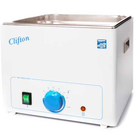 Water bath unstirred Clifton NE1-14 14L capacity with analogue control, no drain, no timer, maximum temperature 100°C, stability +/- 0.25°C with single point calibration
