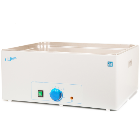 Water bath unstirred Clifton NE1-56 56L capacity with analogue control, with drain, no timer, maximum temperature 100°C, stability +/- 0.25°C with single point calibration