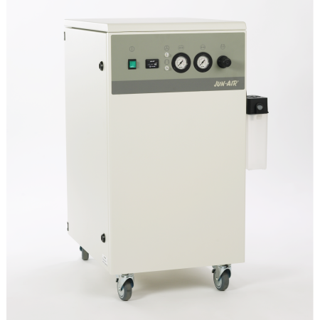 This product has been discontinued by the manufacturer. Please contact us for the closest replacement - Air compressor Jun-air OF302-25MQ2 oil free, 25l receiver volume, noise level of 47dB, airflow of 40l/min @ 5 bar, 34l/min @ 7 bar and 30l/min @ 8 bar, for general laboratory applications, gas generation, anti-vibration tables, mass spectrometry, rheometers, gas and ION chromotography